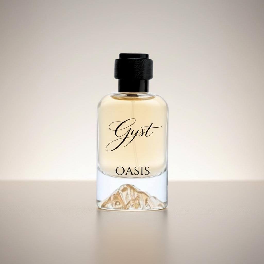 Step into a world of daring elegance with Gyst Oasis. This fragrance is a celebration of confident, modern femininity—a scent designed for those who live authentically and without compromise. Housed in a striking glass flacon featuring a uniquely sculpted, crystal-like mountain base, Oasis captures the essence of a serene yet powerful landscape.